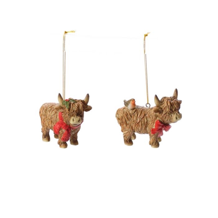 Set of 2 Christmas Highland Cow Hanging Decoration