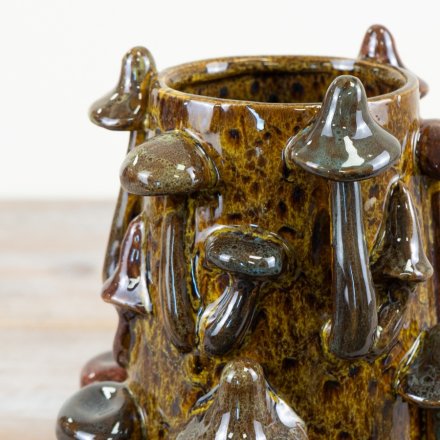 3D Mushroom Ceramic Vase – Forest Green Glaze