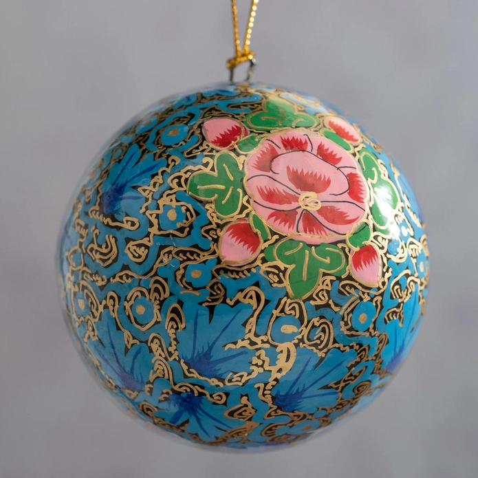 A beautifully handcrafted paper mache Christmas bauble.