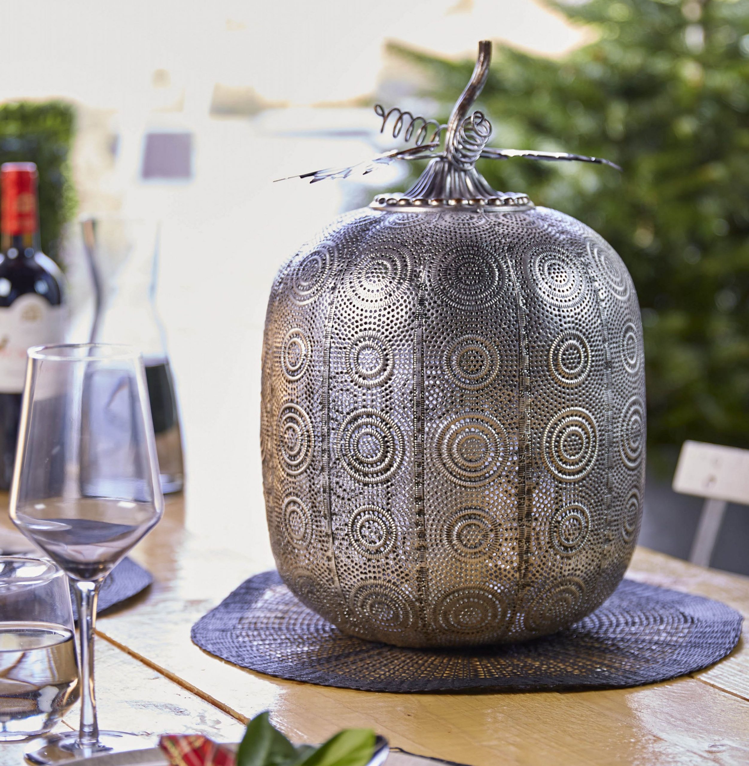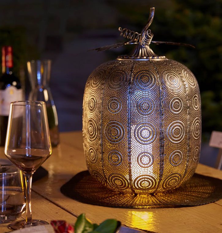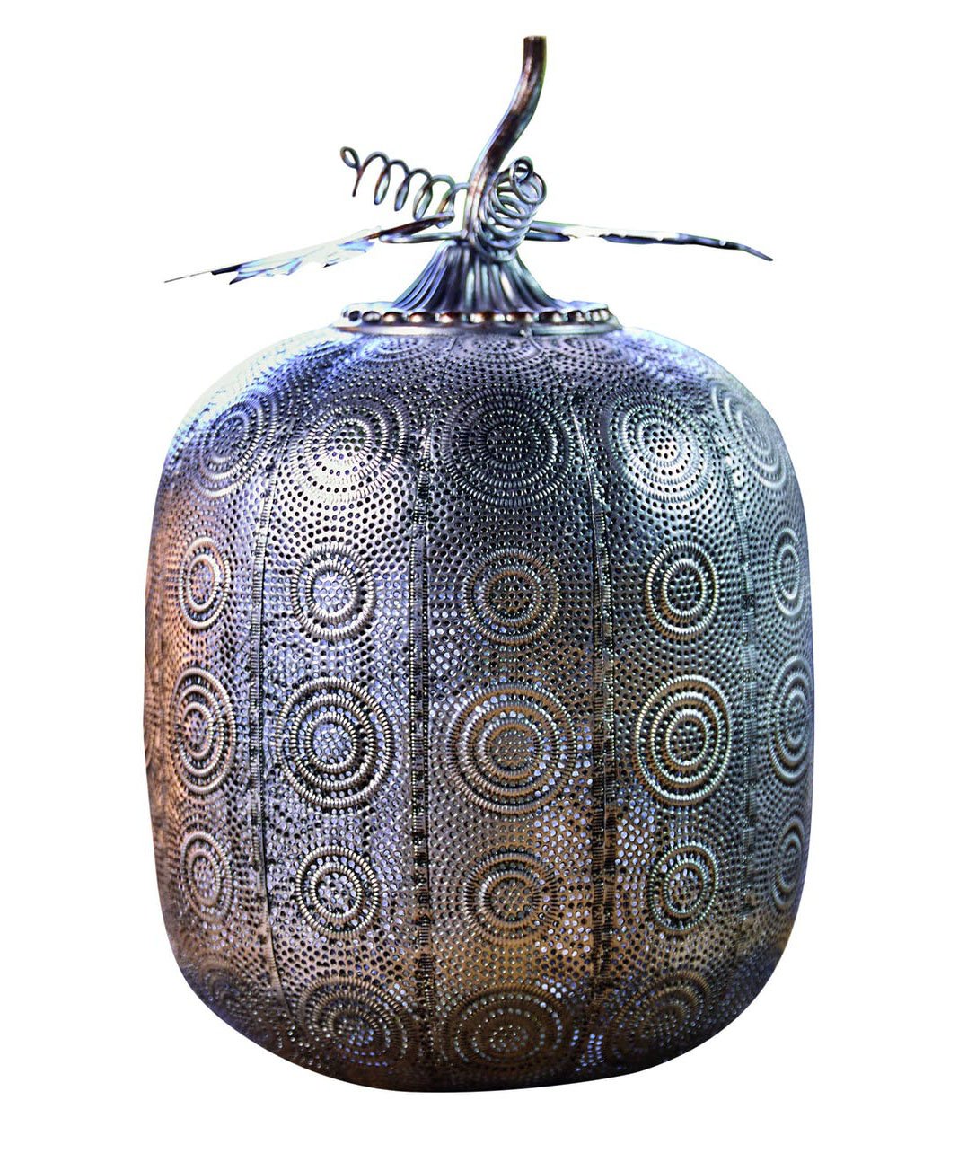 Antique Silver Tall Pumpkin Battery Operated Lantern