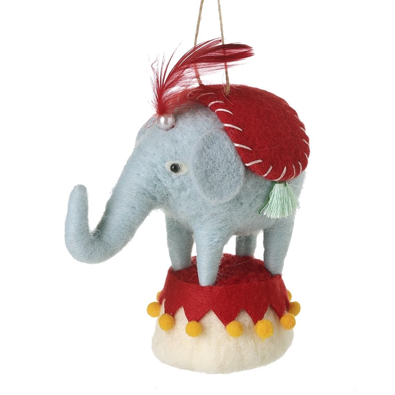Perfectly crafted for hanging, it adds a whimsical touch to holiday trees, nursery rooms, or any festive display. Whether you’re a fan of classic circus fun or looking for a cute and unique decoration, this felt elephant is sure to delight!