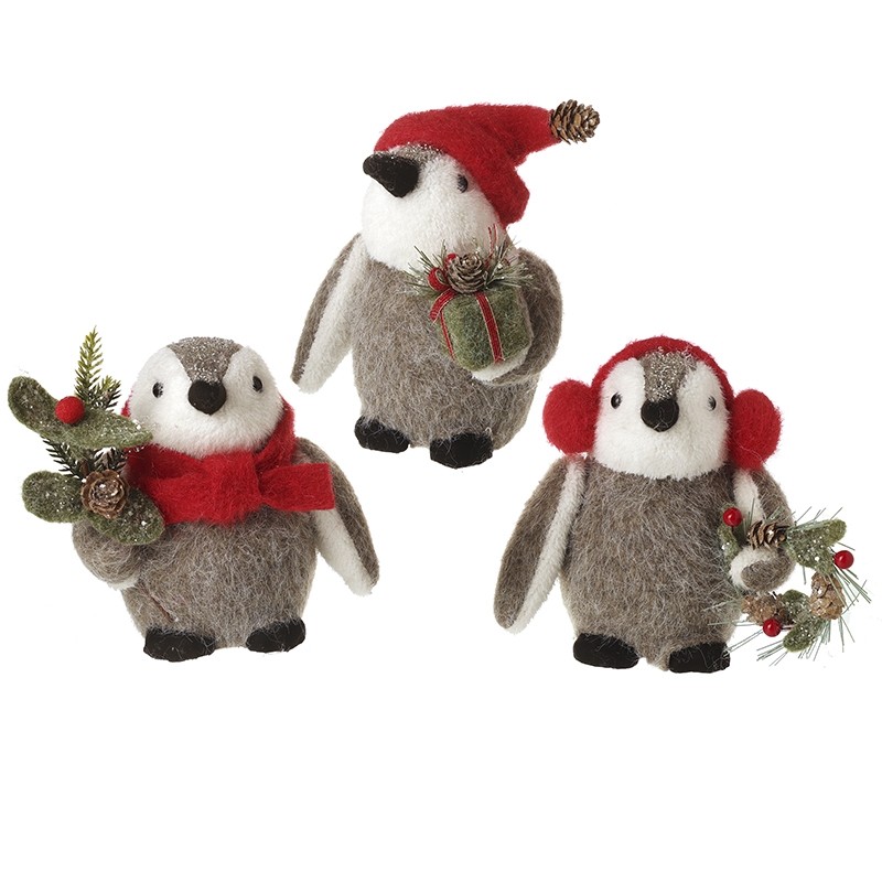 Bring a flurry of festive fun to your decor with these adorable Felt Penguins! Each charming penguin is made from soft felt and dressed in wintry details, holding a seasonal accent — one with a sprig of holly, another with a wrapped gift, and the third with a festive wreath.