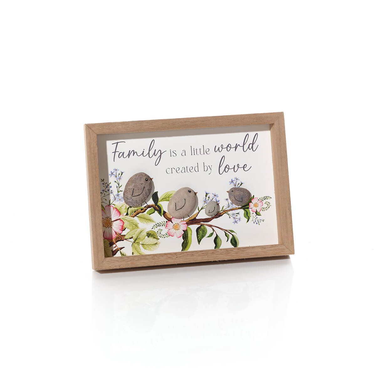 Floral Family Love Framed Plaque with Resin Pebble Birds