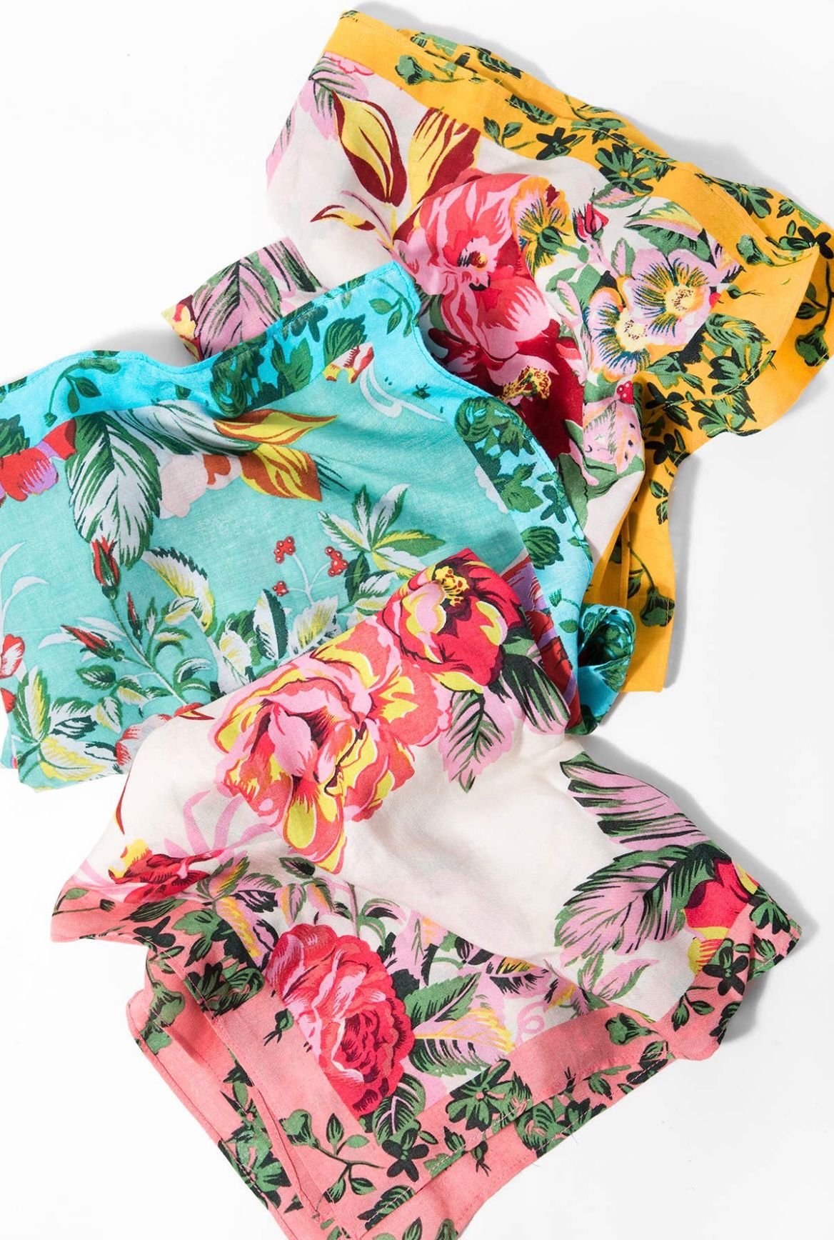 This bandana will be your summer fave – fresh, colorful, and incredible! Featuring a lush floral multi-pattern with an ornate contrast border, this will be your most versatile summer accessory. Tie around your face, use it as a neck-tie, hair tie, scarf, any way you’d like.