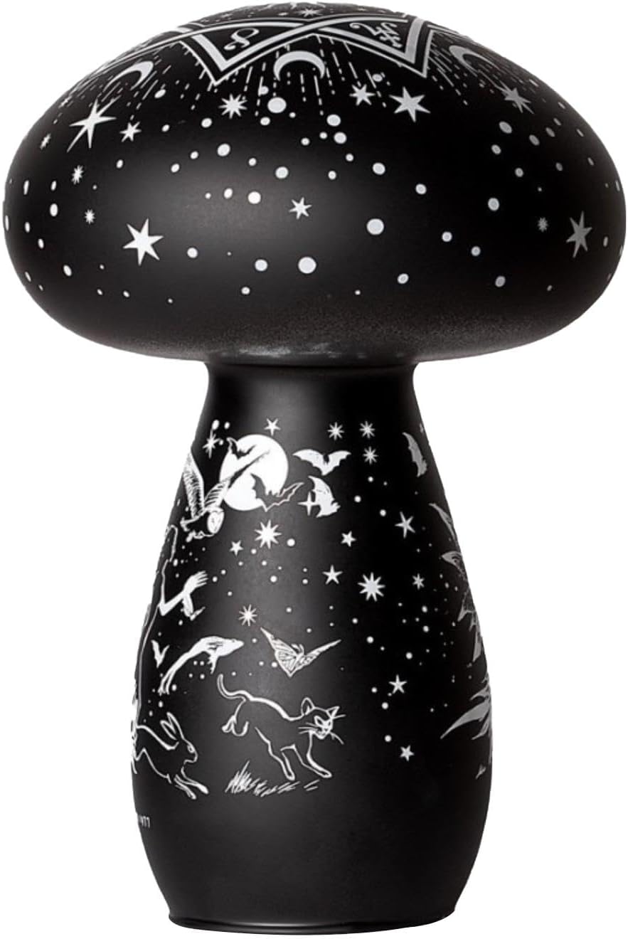 Decorative LED toadstool lamp inspired by gothic fantasy and folklore, perfect for alternative home décor, ambient lighting, bedroom night lights, shelves, and atmospheric interior displays.