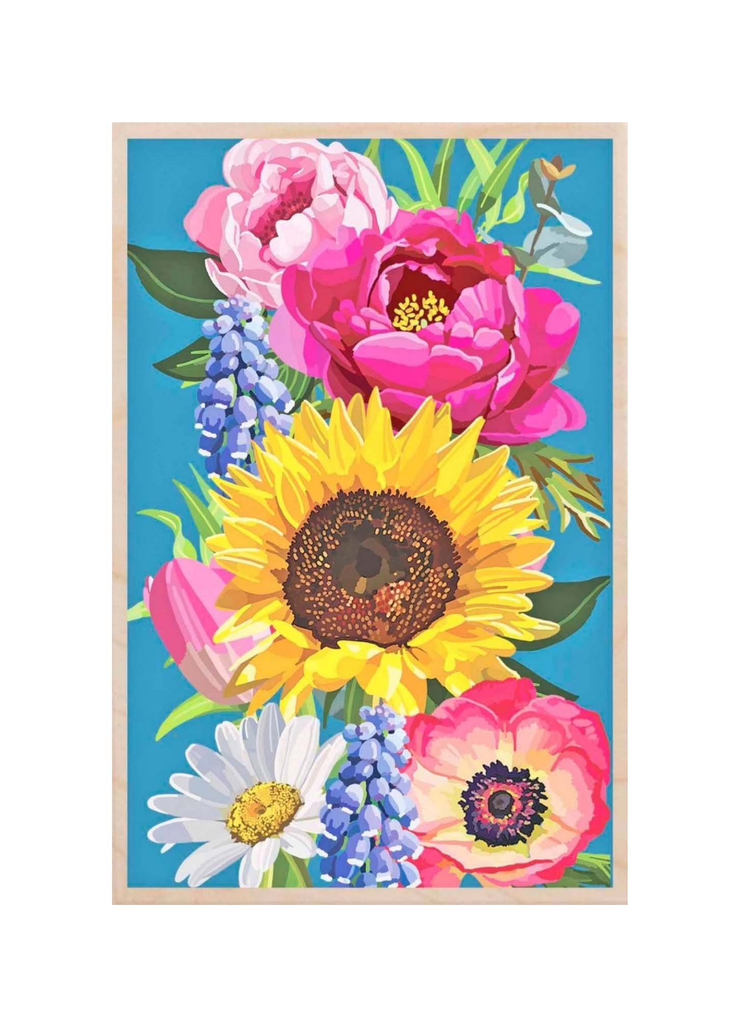 ‘Sunflower’ wooden postcard. Original illustration ©Sarah Kelleher.